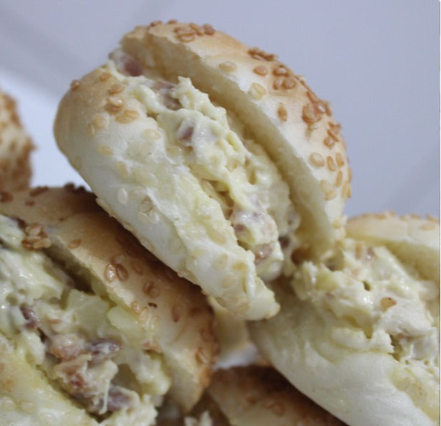 Pan trencita con pollo, tomate y mayonesa de aceituna