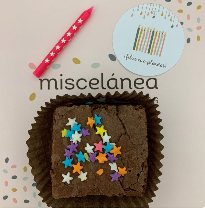 6 unid. de brownies festivos, viene en bolsita de papel, este modelo es para cumpleaños, pero puede ser para felicitar a tu equipo de trabajo, de estudios, reunión con niños, jóvenes o adultos, PERSONALIZALO.
