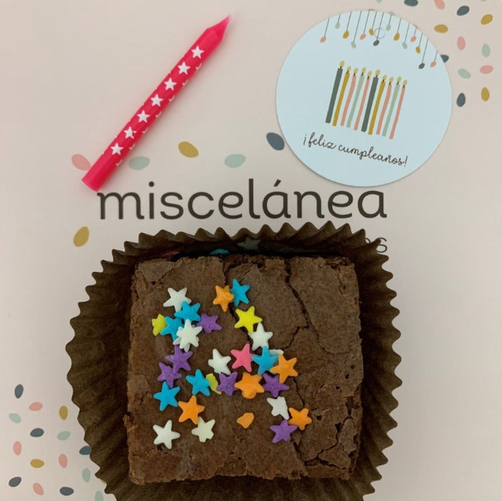 6 unid. de brownies festivos, viene en bolsita de papel, este modelo es para cumpleaños, pero puede ser para felicitar a tu equipo de trabajo, de estudios, reunión con niños, jóvenes o adultos, PERSONALIZALO.
