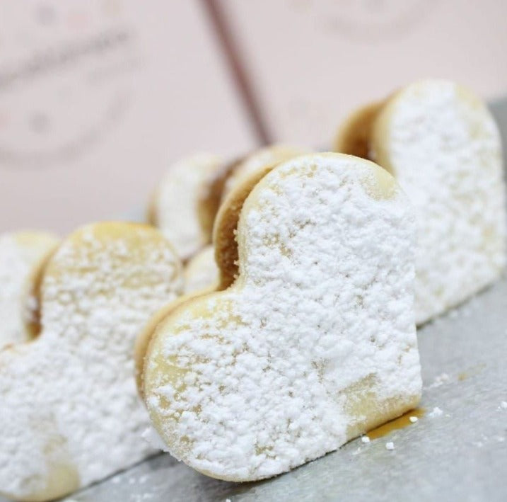 Caja de 16 alfajores corazón rellenos de manjar , tras un mordisco te llenas de ilusión, famosisimos en Miscelánea por su sabor.