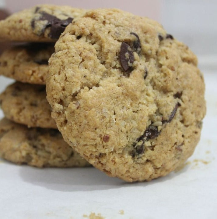 Caja de galletas de avena, frutos secos y chocolate, cada galleta pesa aprox. 50gr.